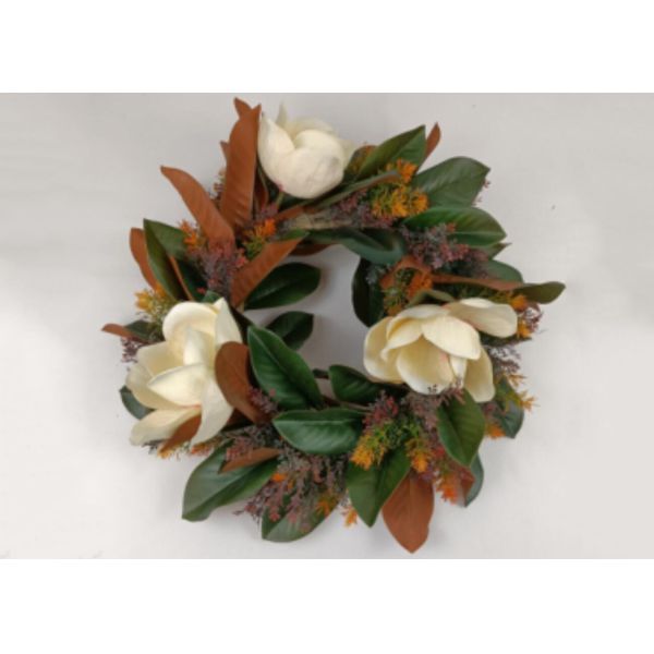 Fake Yulan Magnolia With Leaves Wreath 60cm